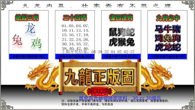 | 312期:💫绝杀两合💫【06.09合】开:龙14中 |