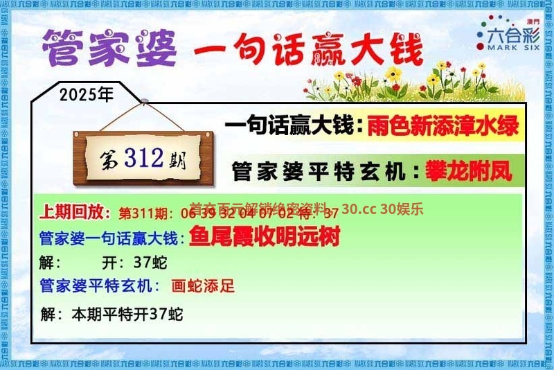| 311期:三季中特【夏冬秋】开:蛇37中 |
