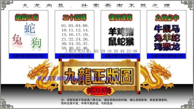 | 314期:九肖 | 蛇马羊鸡猴狗牛猪龙 | 开:羊23中 |